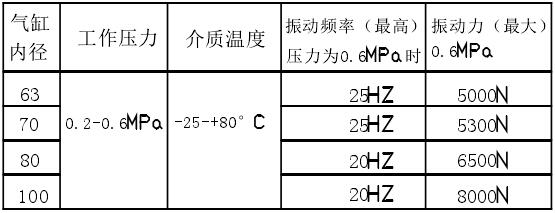 注:根據用戶需要,可開發較小規格或更大規格的振動氣缸。