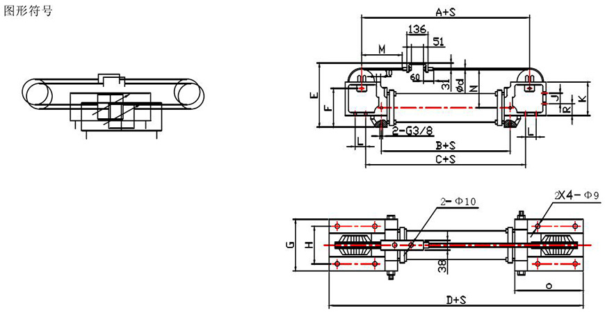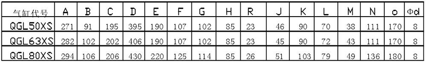 氣缸內徑D=80mm 行程S=1000mm 其代號為:QGL80×1000