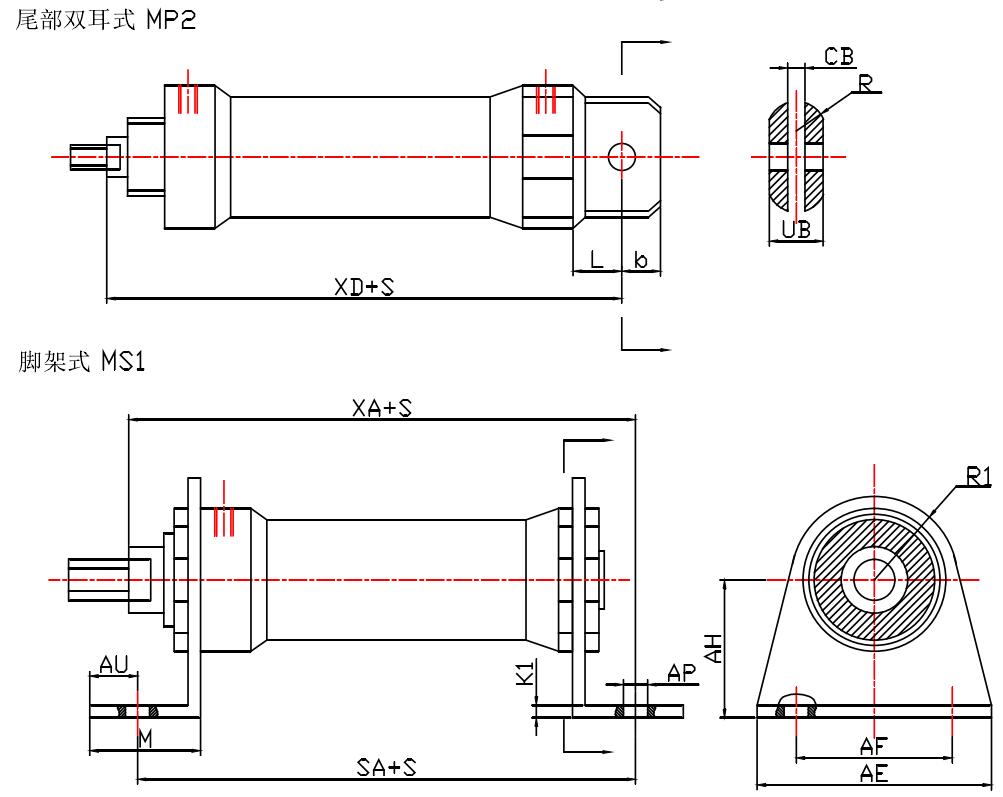 *單活塞桿、活塞雙向作用,無緩沖裝置。