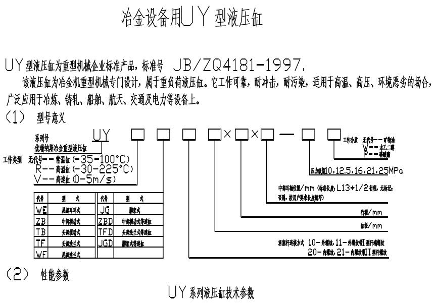 冶金設備UY型液壓缸